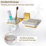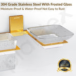 Plantex 304 Grade Stainless Steel Glass Soap Dish with Tumbler Holder/Soap Stand/Toothbrush Holder/Bathroom Accessories - Crystal (PVD Gold)
