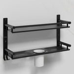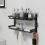 Plantex 5in1 Bathroom Organiser Without Drill/Stainless Steel Bathroom Shelf/Rack with Steel Soap Stand for Wall/Tumbler/Brush Holder/Bathroom Fittings Accessories Set (Black)