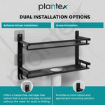 • ๐๐ซ๐ž๐ฆ๐ข๐ฎ๐ฆ ๐๐ฎ๐š๐ฅ๐ข๐ญ๐ฒ ๐Œ๐š๐ญ๐ž๐ซ๐ข๐š๐ฅ : Plantex 2-tier self adhesive bathroom shelf is made of stainless steel and it has a 7 layered powder coated black finish, which helps to keep it life-long bright & leak rust proof.