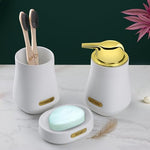 ๐๐จ๐ฆ๐ฉ๐ฅ๐๐ญ๐ ๐-๐๐ข๐๐๐ ๐๐๐ซ๐๐ฆ๐ข๐ ๐๐๐ญ๐ก๐ซ๐จ๐จ๐ฆ ๐๐๐ญ: This thoughtfully designed set includes a lotion dispenser with a stylish golden pump, a versatile tumbler for toothbrushes or rinsing, and a matching soap dish โ all crafted to keep...