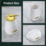 - ๐๐จ๐ฆ๐ฉ๐ฅ๐๐ญ๐ ๐-๐๐ข๐๐๐ ๐๐๐ซ๐๐ฆ๐ข๐ ๐๐๐ญ๐ก๐ซ๐จ๐จ๐ฆ ๐๐๐ญ: This thoughtfully designed set includes a lotion dispenser with a stylish golden pump, a versatile tumbler for toothbrushes or rinsing, and a matching soap dish โ all crafted to keep your bathroom space neat, functional, and coordinated.