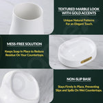 - ๐๐ฎ๐ฑ๐ฎ๐ซ๐ข๐จ๐ฎ๐ฌ ๐๐จ๐ฅ๐-๐๐จ๐ง๐ ๐๐๐๐๐ง๐ญ๐ฌ: The glossy golden dispenser abs pump and matching gold labels add a refined and modern touch to the set, turning ordinary daily essentials into a beautiful part of your bathroom dรฉcor.