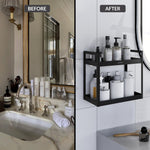 Plantex Deluxe 2 Tier Self Adhesive Bathroom Shelf Rack/Bathroom Organiser Without Drill/Bathroom Shelf Rack/Kitchen Stand Kitchen Multipurpose Shelf(Black, Powder Coated,GI Metal)