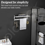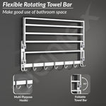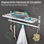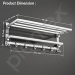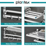 Plantex Folding Towel Rack with Hooks for Bathroom/24 Inch Stainless Steel Towel Hanger/Towel Stand/Towel Rod/Bathroom Accessories - Pack of 1 (Chrome)