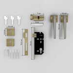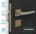 - 𝐐𝐮𝐚𝐥𝐢𝐭𝐲: This 7091 has a Premium virgin zinc alloy and Brass build. It comes with a reversible brass latch with the brass deadbolt on one side and key operation from the other side. The Zinc alloy handle is fully reversible and can be installed on both sides of the door.