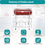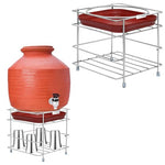 Plantex Matka Freestanding Stand/Stainless Steel 2-Tier Matka Stands For Kitchen/Round Pot Tiered Shelf Stand For Kitchen Utensils With Tray - (1185, Chrome)