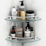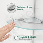 Plantex Premium Glass Corner Shelf for Bathroom/Bathroom Corner Shelf/Kitchen Glass Shelf/Wall Mounted Shelf with Brass Railings and Wall Brackets (9x9 Inches-Pack of 2 - Frosted)