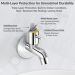 - ๐๐๐ซ๐๐ฆ๐ข๐ ๐๐๐ซ๐ญ๐ซ๐ข๐๐ ๐: Bib Cock ensures smooth operation and superior leak protection, saving you from future plumbing woes. The faucet's corrosion-resistant finishes further enhance its durability.