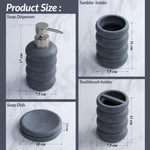 - ๐๐จ๐ฆ๐ฉ๐ฅ๐๐ญ๐ ๐๐๐ญ๐ก๐ซ๐จ๐จ๐ฆ ๐๐๐๐๐ฌ๐ฌ๐จ๐ซ๐ข๐๐ฌ ๐๐๐ญ โ This 4-piece set includes a liquid soap dispenser, toothbrush holder, tumbler holder, and soap holder, providing a cohesive and functional look for your sink area.