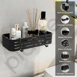 - 𝐒𝐭𝐲𝐥𝐢𝐬𝐡 𝐃𝐞𝐬𝐢𝐠𝐧: This shelf for bathroom comes with Hollow design that never holds water on shelf & keep your bath products clean and tidy. Through its Premium Matt Black finish this shelf can be used as a display shelf or storage shelf and also can be fixed in the smallest spaces.