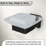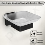 Plantex Stainless Steel Glass Soap Dish for Bathroom/Soap Holder/Soap Case/Soap Stand for Kitchen/Bathroom Accessories - Aqua (Black)