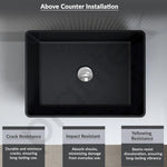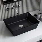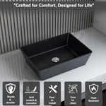 Plantex Table Top Basin for Bathroom/Quartz Rectangle Basin/Vessel Sink Basin Over Counter for Home/Restaurant (Black, 18 x 13 x 5 Inch)